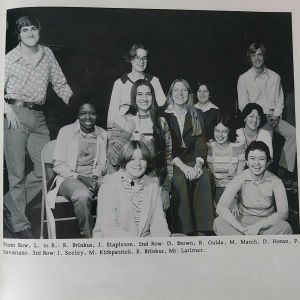 I loved checking out the pictures of the teachers and staff, some with cute notes to me written over their pictures, like my Chemistry teacher writing “To Debbie (my favorite)” or my 10th grade Social Studies teacher writing, “To the brain of 7th – yes you may go to the library tomorrow” or the director of the musical I just wrote about (Who Stole My Thunder) who told me I was a “lively actress”. I hope I won’t hurt anyone’s feelings if I mention I thought my teachers were all so old when I was in high school, but 40 years later I still see at least 4 of them of a regular basis at the bookstore, so I may have been a bit off in my math. I stopped for a second to send up prayers thanking those educators who were no longer with us for what they contributed to my development.